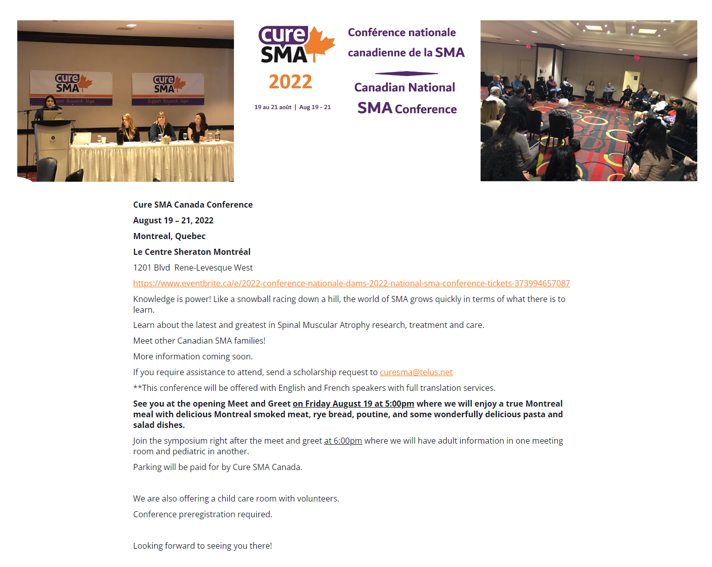 Cure SMA Canada Conference August 10-14th in Hope, BC.
